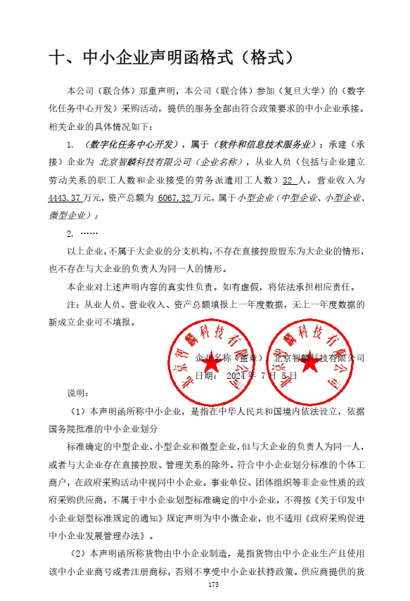 1 | 北京智麟科技有限公司 | 数字化任务中心开发 | 复旦大学数字化任务中心为个人、部门、团队等群组提供在线任务管理与日程管理功能,减低学校内部任务的管理和协调复杂度。通过整合各业务系统、以及审批流程等办理信息,提供个人信息化应用时间轴,使师生能够更有效地管理和跟踪任务。 | 满足采购文件规定的要求 | 2024年12月31日前完成项目验收 |