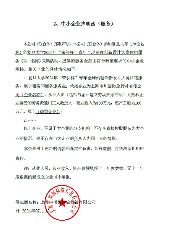 二、项目名称:复旦大学2024年“荣昶杯”青年全球治理创新设计大赛住宿服务(第二次)
