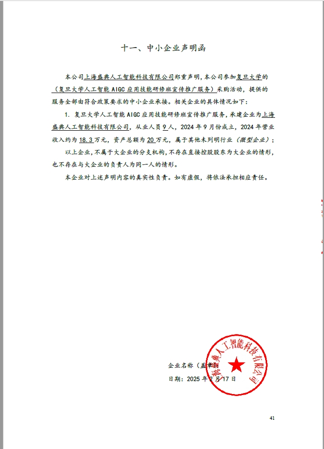 1 | 上海盛典人工智能科技有限公司 | 人工智能AIGC应用技能研修班宣传推广服务 | 人工智能AIGC应用技能研修班宣传推广服务 | 满足采购文件规定的要求 | 合同签订后至2026年3月1日止。 |